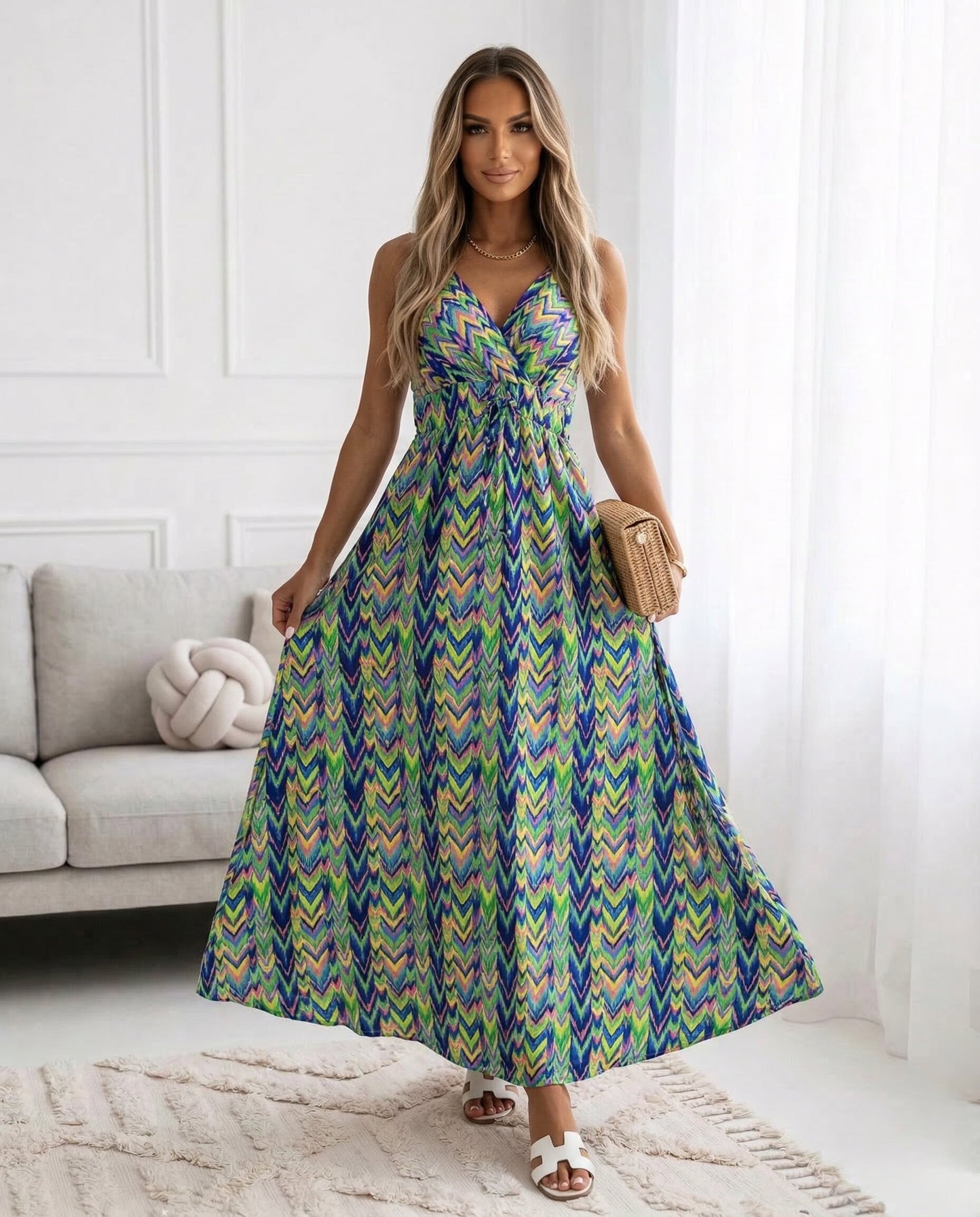 Lekka, letnia sukienka wykonana z przewiewnej wiskozy.