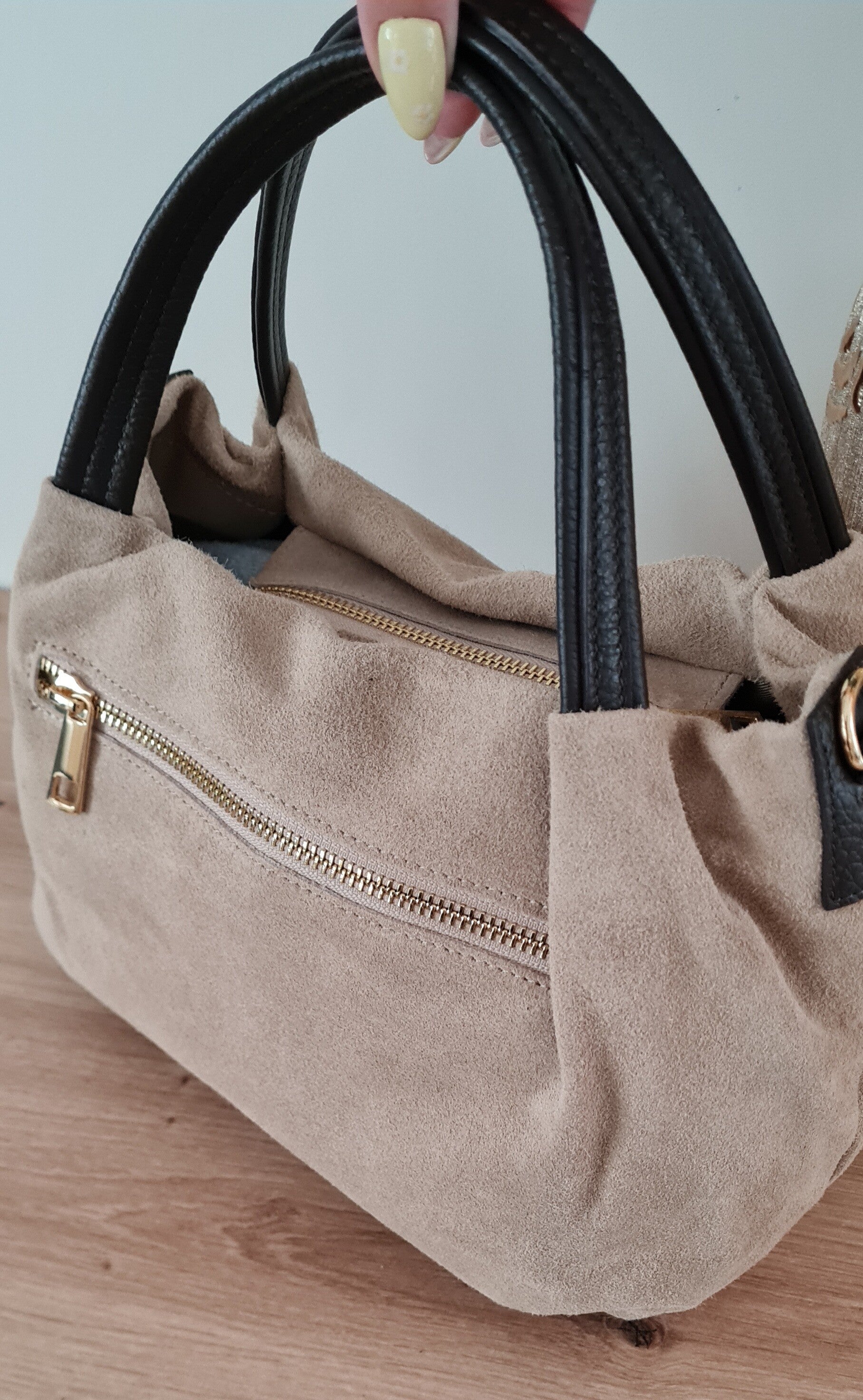 Torebka wykonana z zamszu naturalnego.